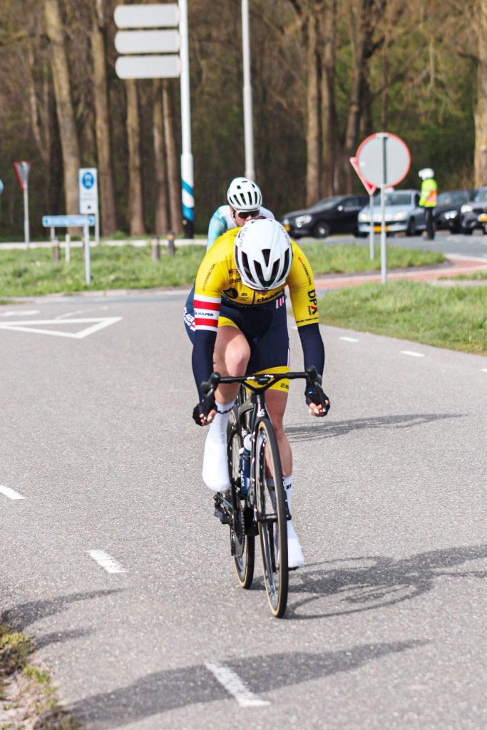 Op een van de eerste lange rechte stukken ontstond een sterke kopgroep. Helaas waren wij hierin niet vertegenwoordigd. Ondanks dat het peloton daarna relatief goed samenwerkte, bleek het verschil met de koplopers te groot om nog te overbruggen.